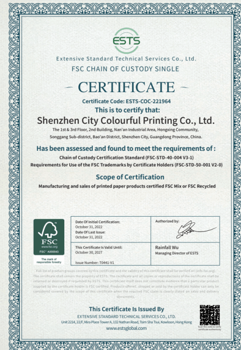 恭賀深圳市好晶彩印刷有限公司2022年通過FSC認(rèn)證